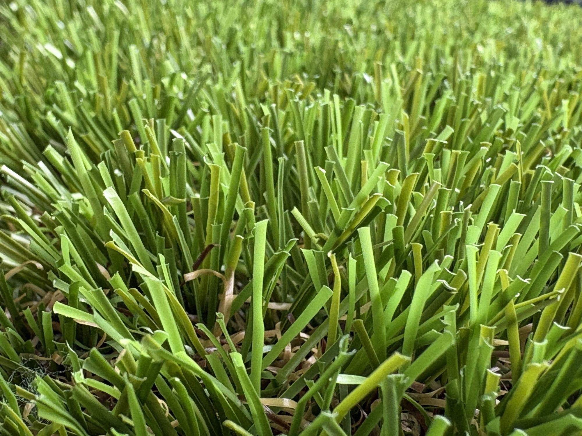 In onze voortdurende zoektocht naar het verbeteren van de kwaliteit van kunstgras voor gazons en landschapsinrichting, hebben we natuurlijk gras bestudeerd en ontdekt dat elk grassprietje uniek is in vorm, lengte, dikte en kleur. Dat is wat natuurlijk gras zijn perfect willekeurige uitstraling geeft. In nauwe samenwerking met ons ontwikkelingsteam zijn we erin geslaagd dit natuurlijke uiterlijk na te bootsen door onze machines aan te passen en de beste gazonproducenten ter wereld in te schakelen.